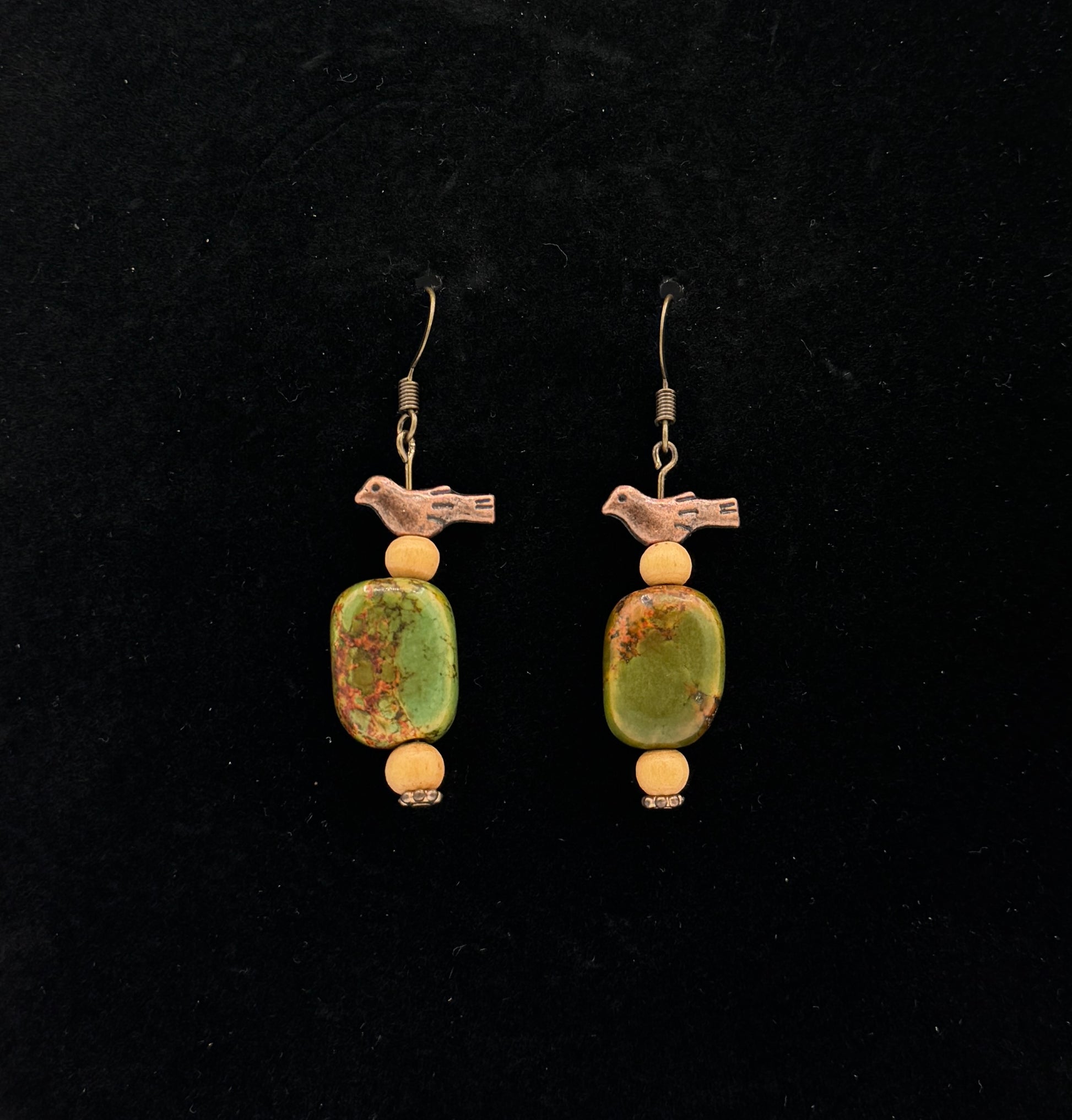 Jasper, wood beads, copper birds